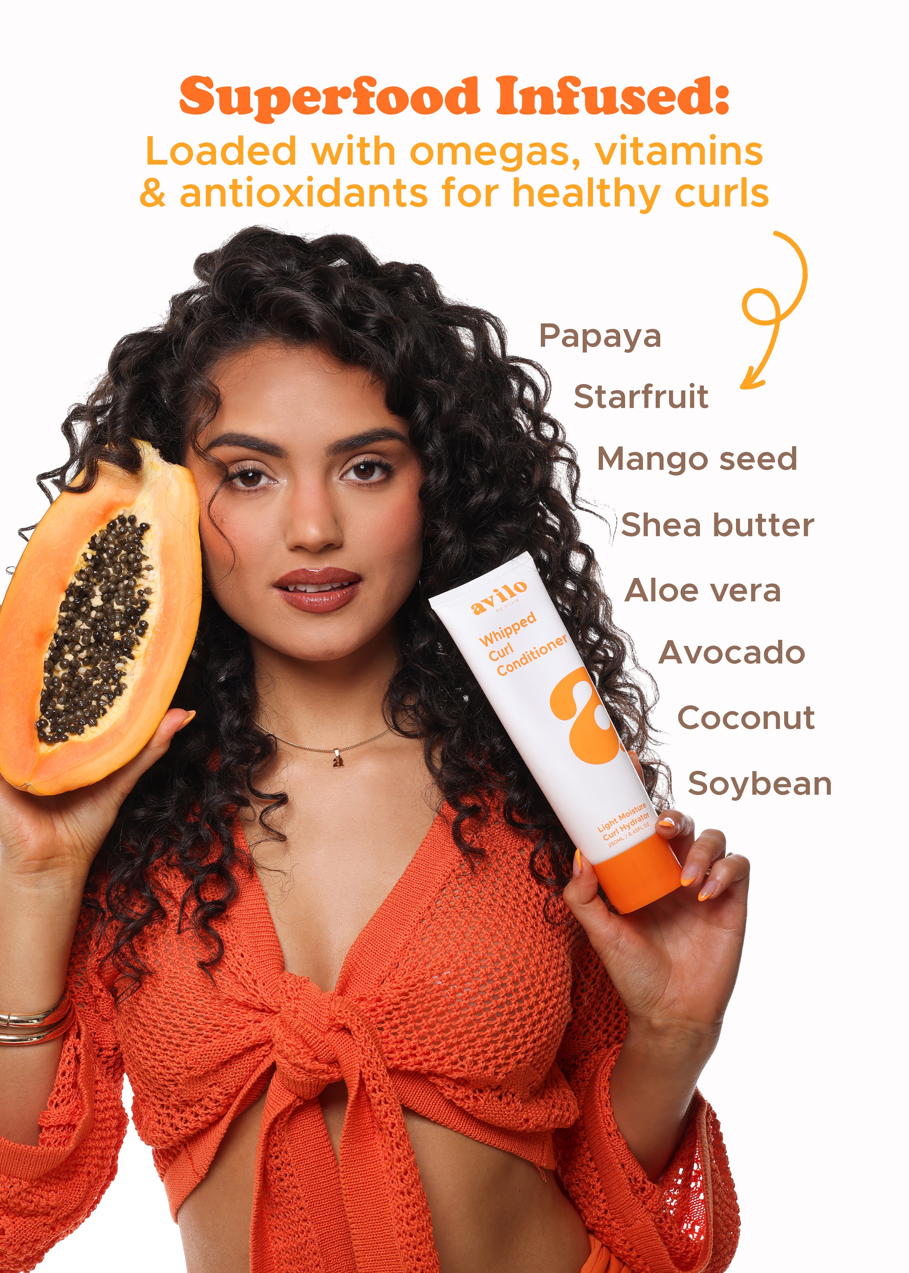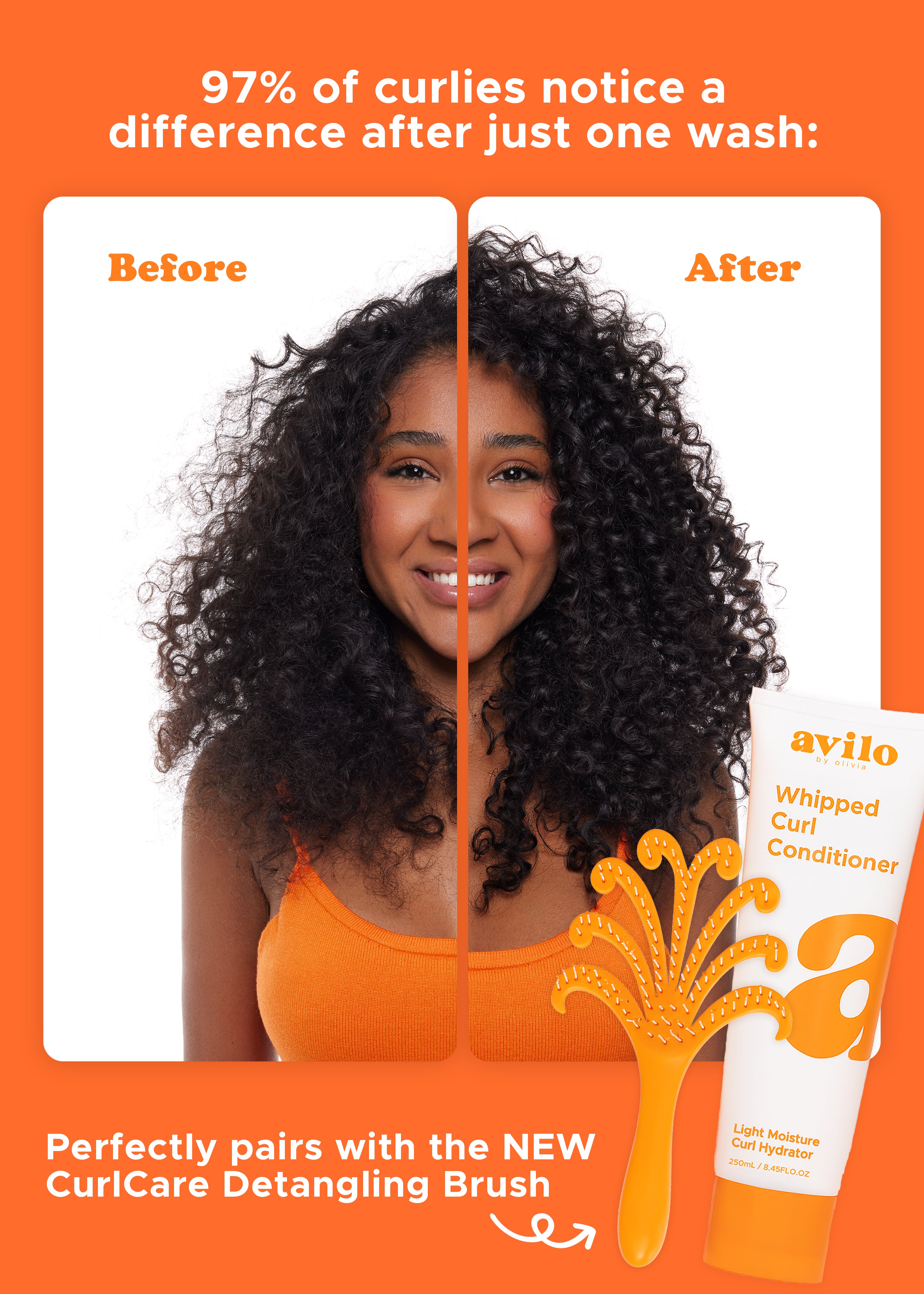 I created the Avilo Whipped Curl Conditioner for curlies who wash their hair multiple times a week and need hydration without the heaviness. It's perfect for those with finer textures or prefer something lighter than a hair mask. Formulated with mango seed butter, hyaluronic acid, and papaya extract, it nourishes deeply, softens effortlessly, and boosts shine — all without weighing your curls down. The result? Light, bouncy, healthy curls that feel as fresh as they look.